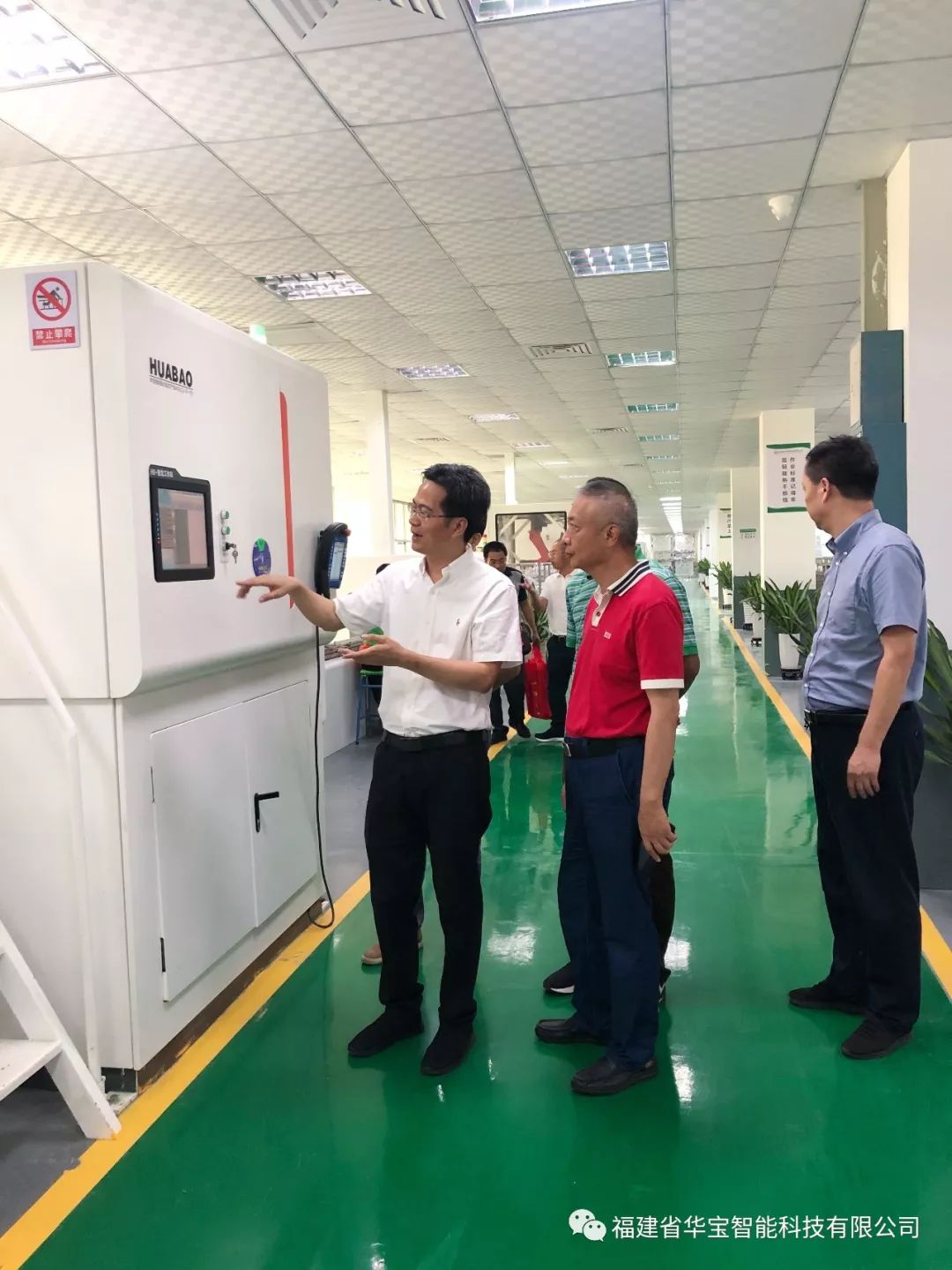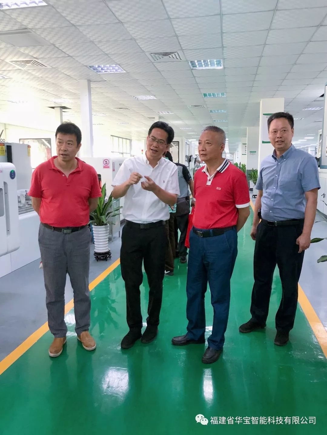 福建華閩集團(tuán)劉平山董事長(zhǎng)、王志明副董事長(zhǎng)、池徳庭常務(wù)副總、張靚董事長(zhǎng)助理、林玉明業(yè)務(wù)部經(jīng)理、技術(shù)人員張平山一行對(duì)華寶科技休閑鞋智能化成型生產(chǎn)線硫化工藝產(chǎn)線以及冷粘工藝產(chǎn)線進(jìn)行參觀,同時(shí)也對(duì)華寶科技致力于鞋業(yè)的自動(dòng)化控制和鞋業(yè)機(jī)械的相關(guān)產(chǎn)品的研 發(fā)、生產(chǎn)和銷售表示支持與肯定!